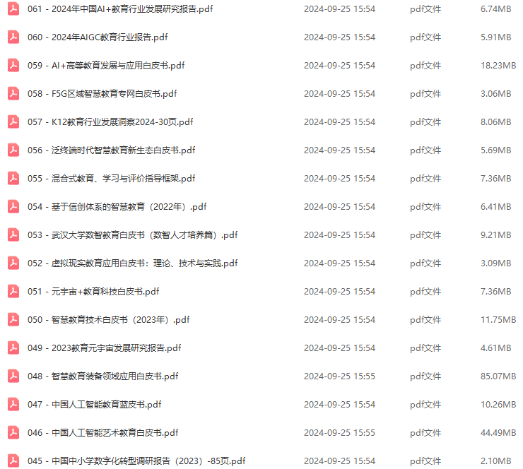2024年09月25日:新增3份标准规范及顶层设计指南,2份整体解决方案及售前PPT,17份行业报告及其他文档。